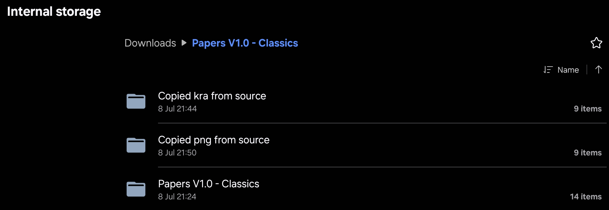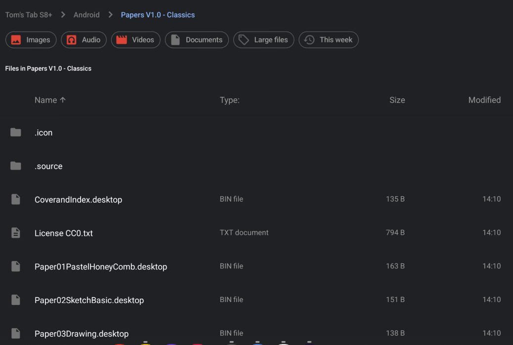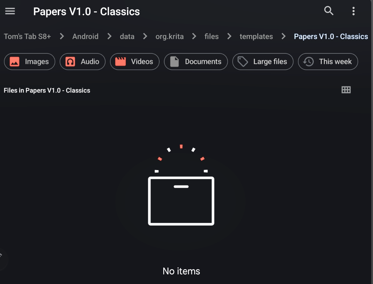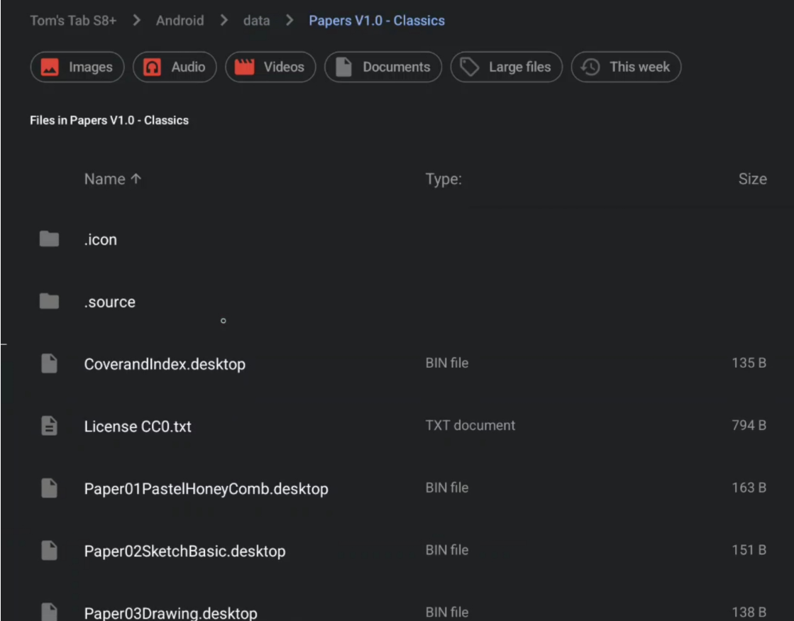 I had copied the PNG & KRA files from extracted Papers V1.0 Classic folder via SD Maid, so all are accessible / able to be copied or moved elsewhere.