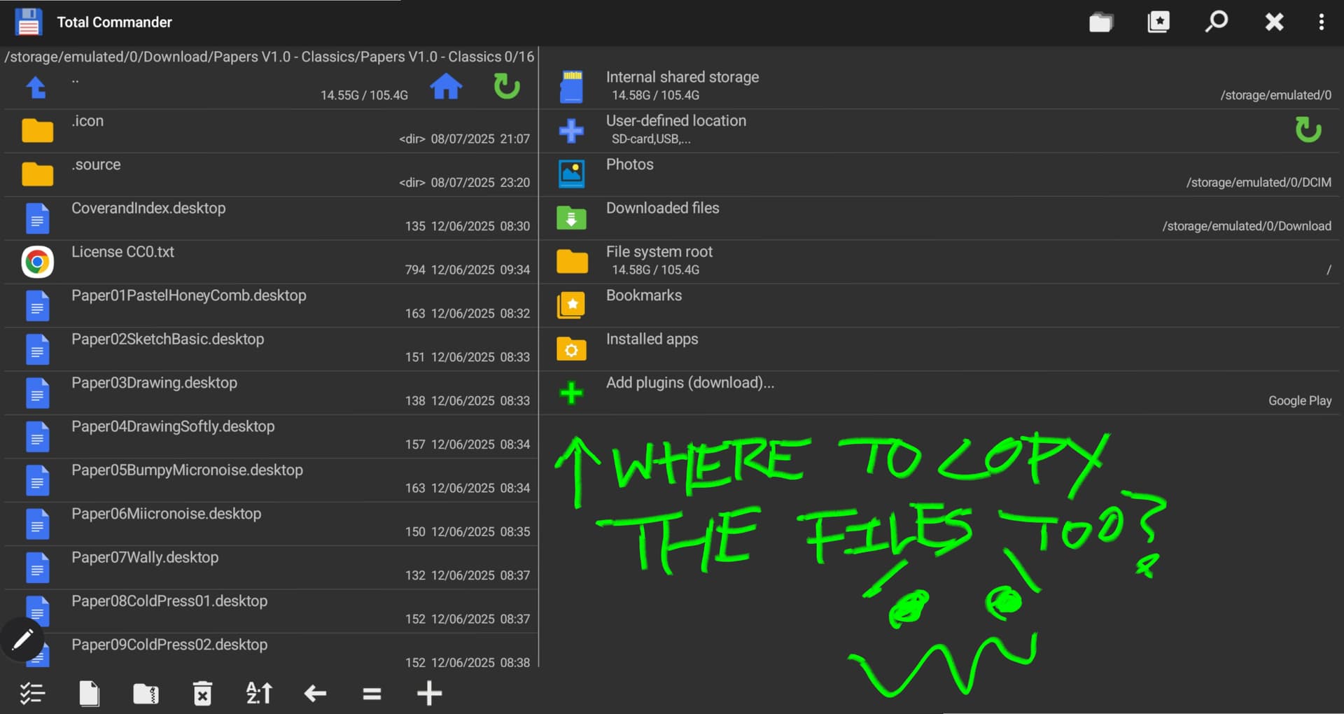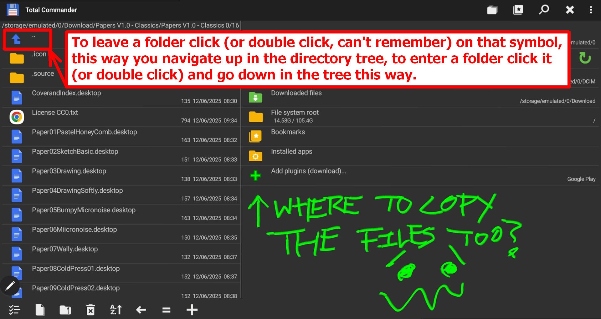 Currently with the above, I can reach the Templates folder BUT if I have either copied the Papers folder previously in Total Commander or if I move across from Templates to my Downloads to copy the Papers & return to paste (all via Files), pasting doesn’t seem to be an option.