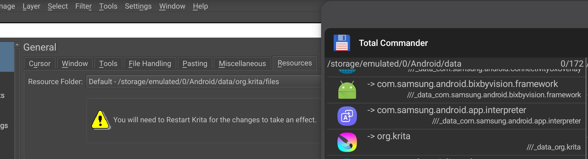 I have now got Total Commander app open & cannot even begin to locate Krita’s resources, let alone the templates folder within there.