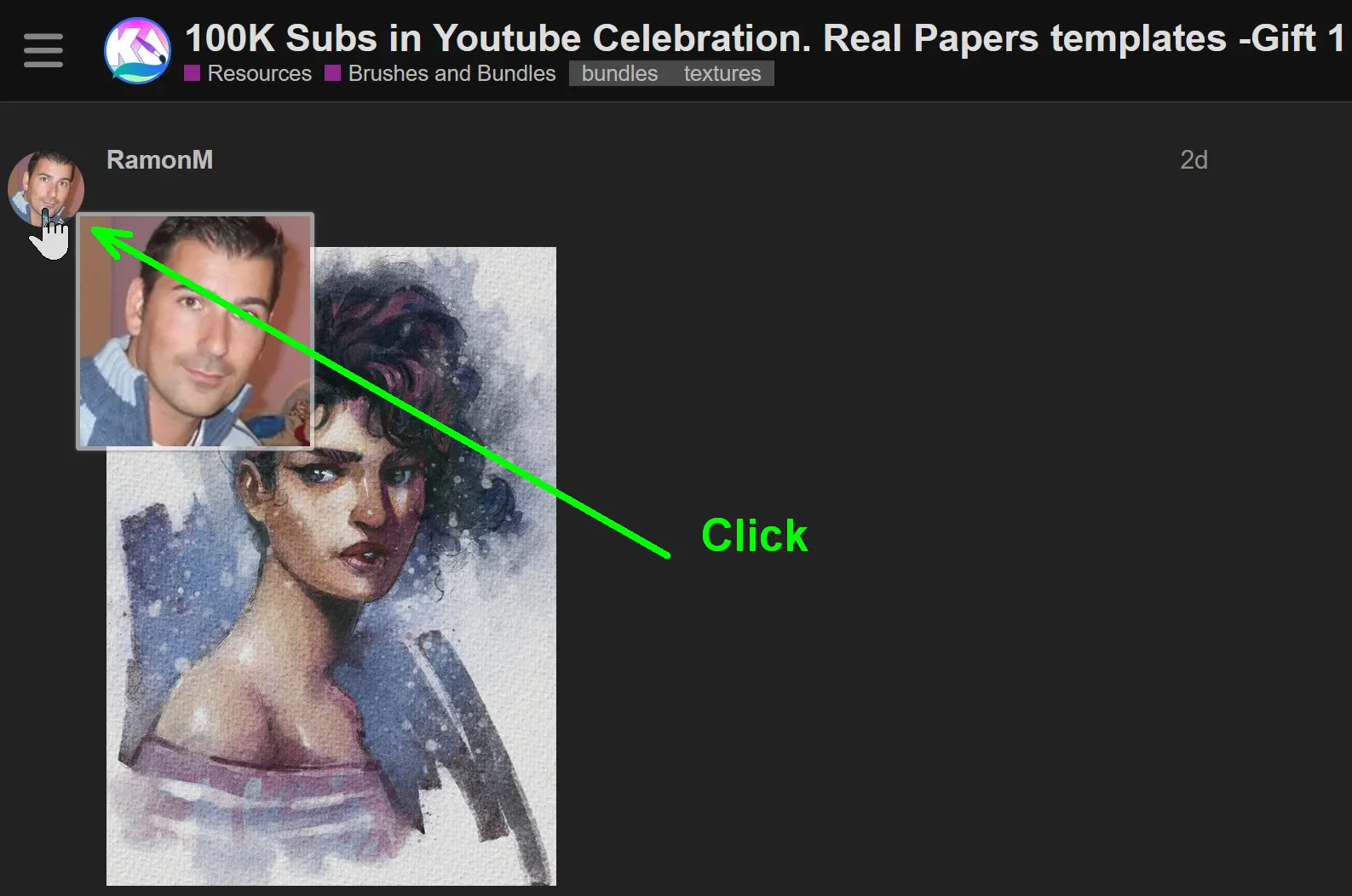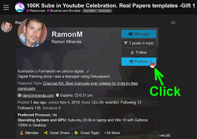 Too lazy to click on the avatar from a user, to then click the button Portfolio and then search through the works of the user shown in their portfolio site?