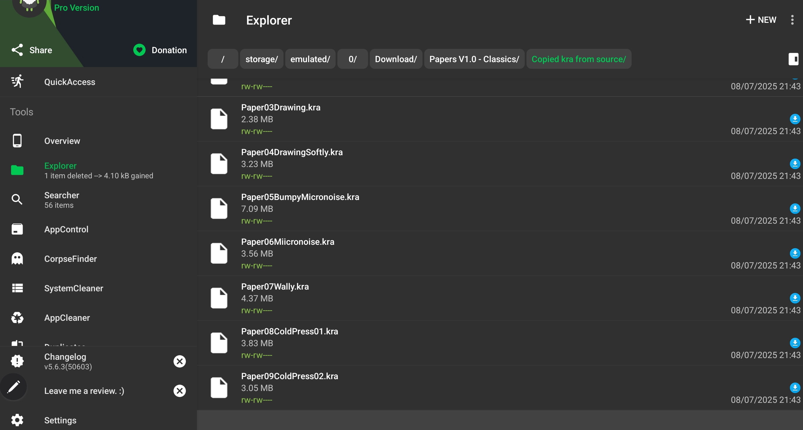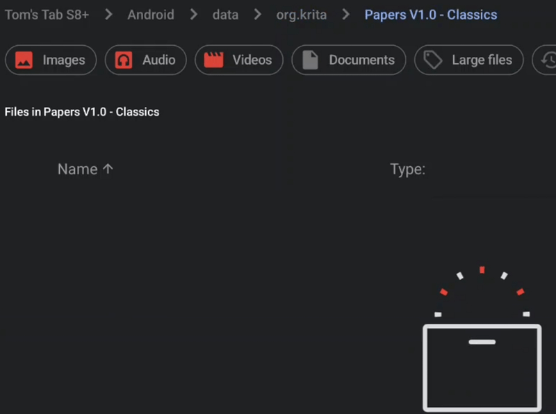 When the Papers folder reaches org.krita it loses its contents (which are still viewable/ present at the previous location “Android/data/”)