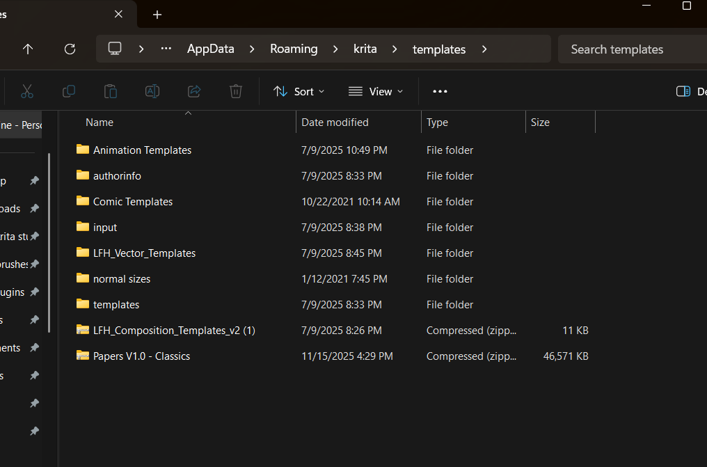 And that’s it. Now restart Krita twice, and you should find the desired templates where they belong.