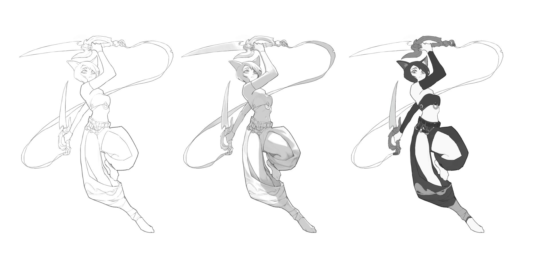 This week’s assignment is to apply 2-point lighting to line art characters to create a sense of three-dimensionality.