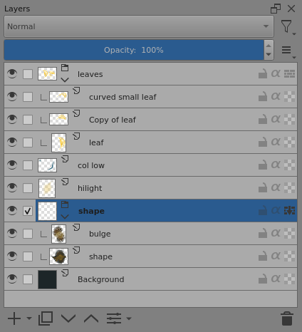 I can’t think why the ‘shape’ group having pass through enabled would affect transform operations on the ‘leaves’ group which is above it.