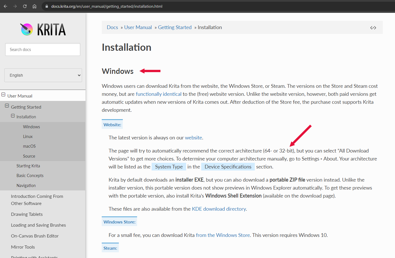 There is a small problem though: At 14:30 you say that krita runs on Windows 32-bit systems.