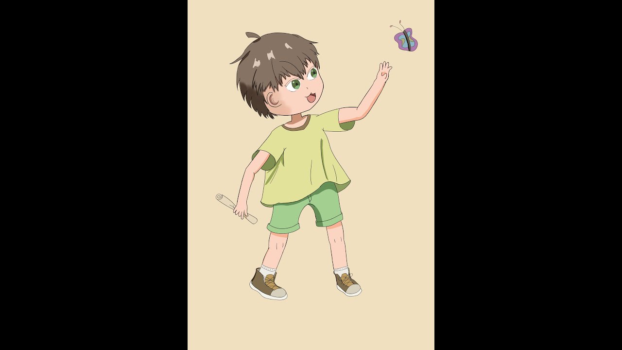 - The theme of this drawing? - A little happy adventurer that is catching a butterfly
