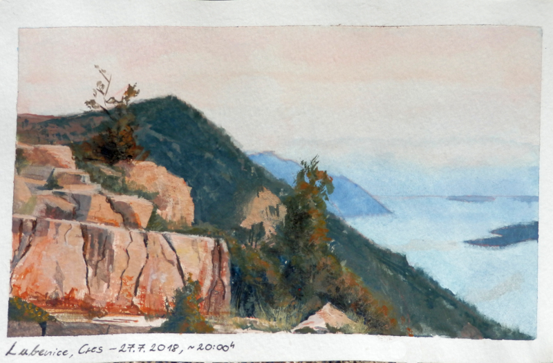 plein air on island Cres, Croatia; gouache in moleskine sketchbook