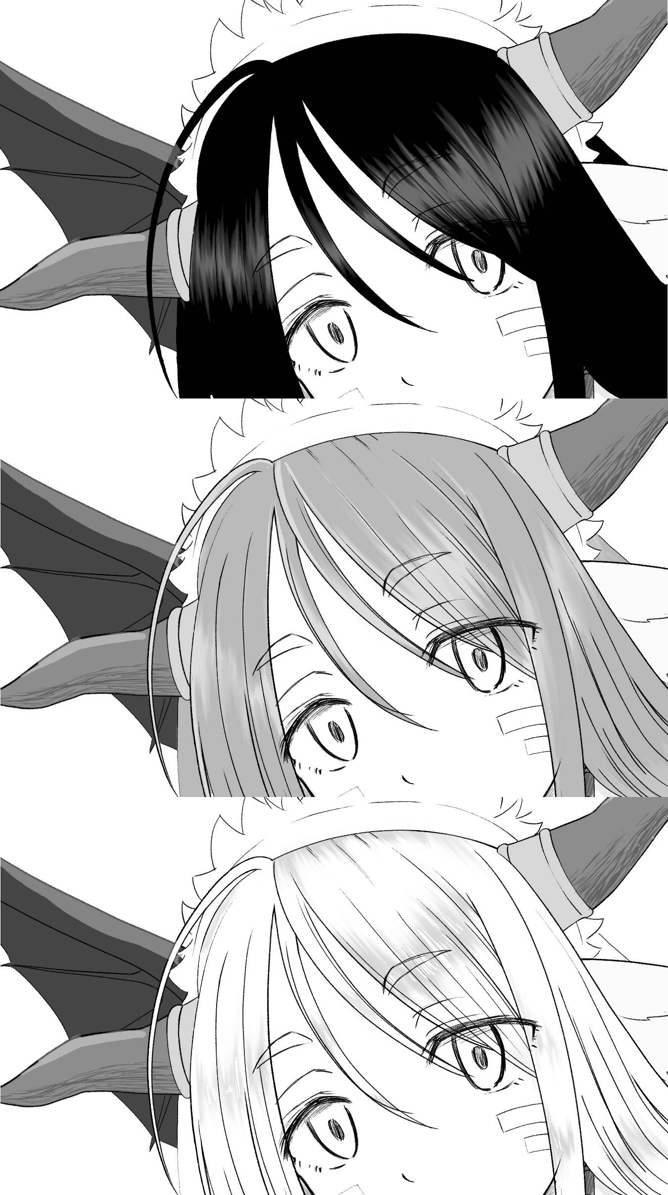 To express the shine of the hair, I looked for ways to save time since it would be quite difficult to draw it meticulously every time the character appears. It’s still rough and needs some adjustments, but I managed to get it to look something like this with brushes and filters…