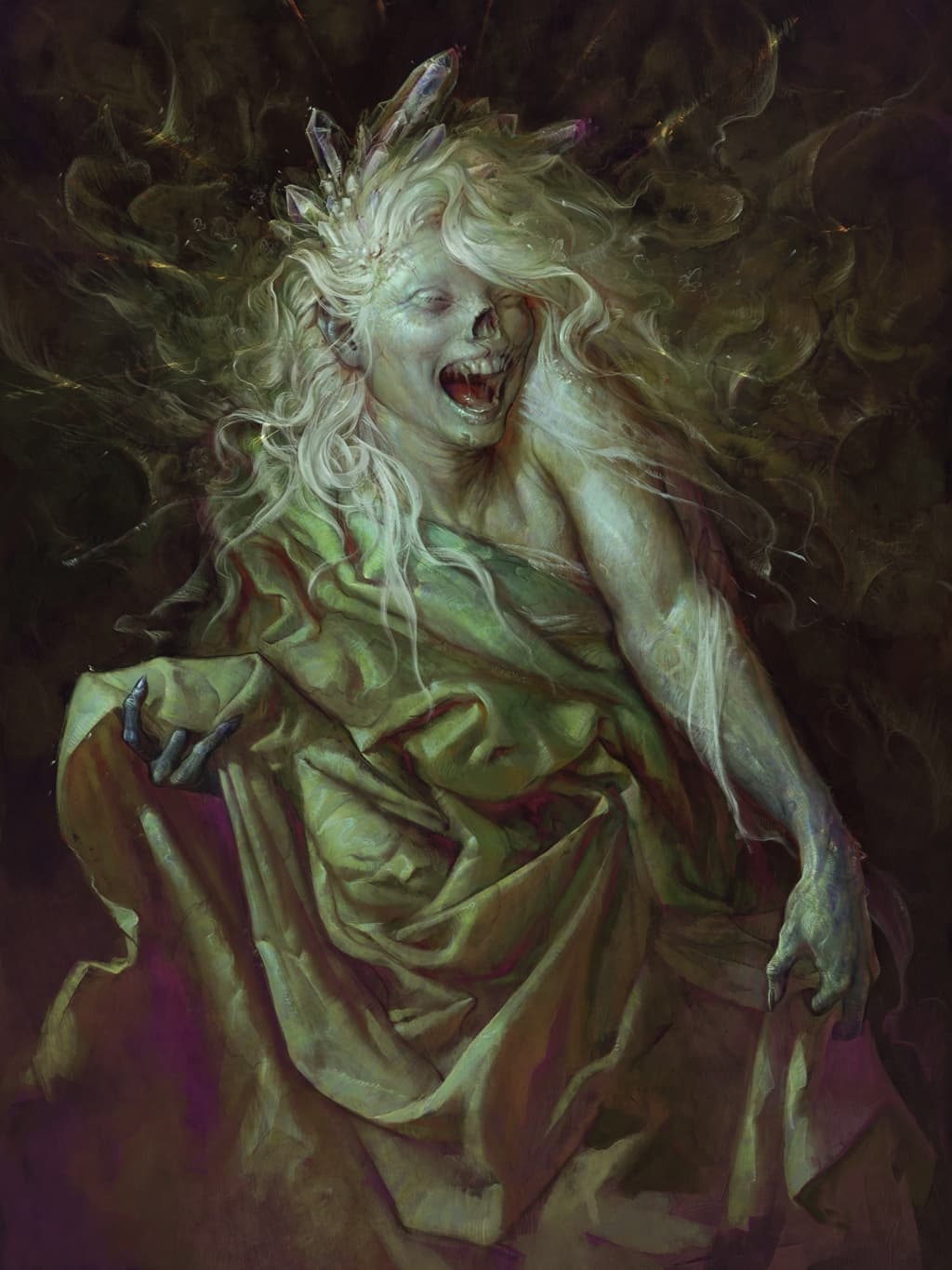 This is amazing! The details are great! My favorite are the crystals growing out of the figure. The overall colors work really nicely (Iām a fan of the calm colors with this subject material). I agree with the others, the drapery is amazing!