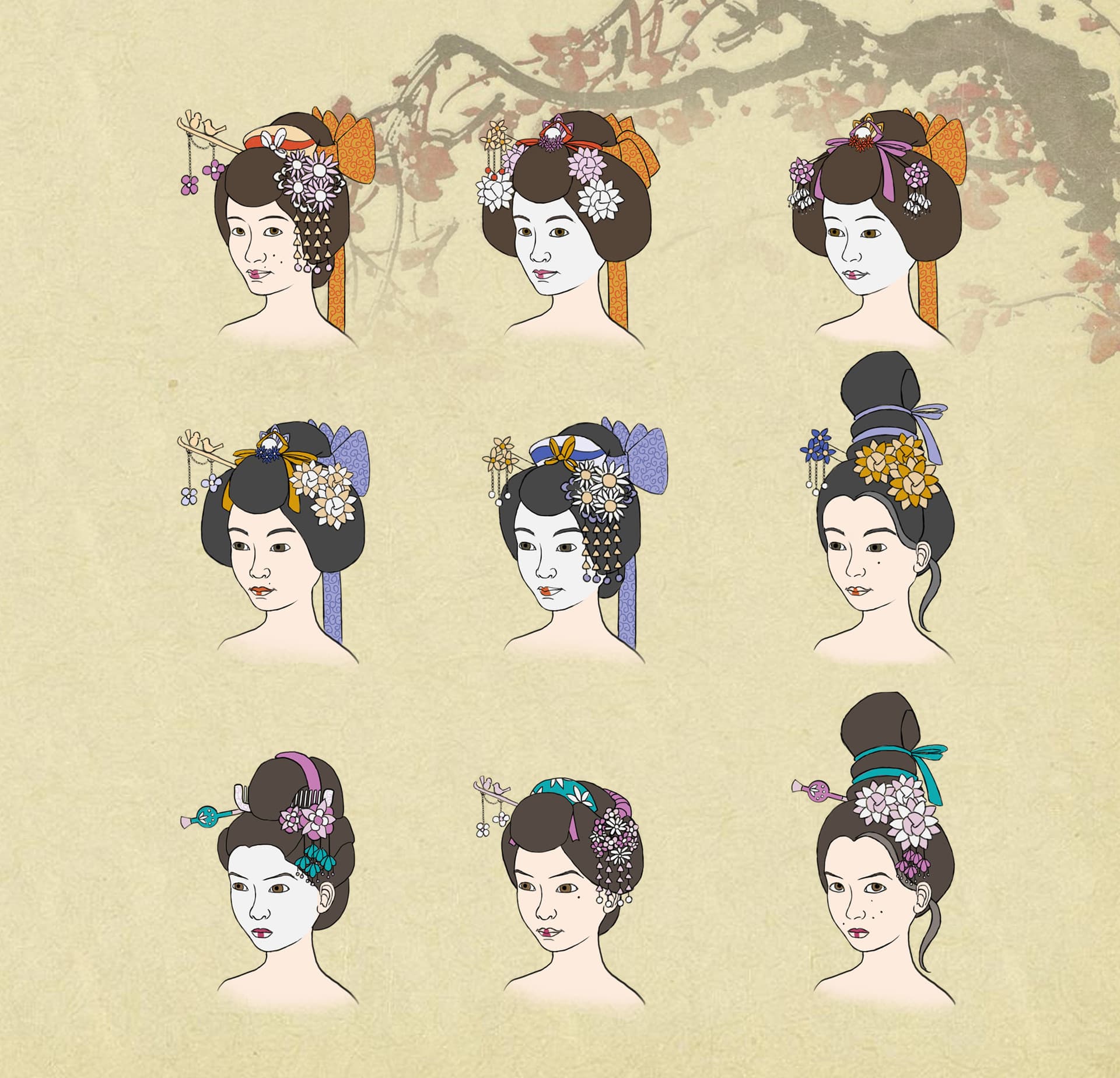 The traditional hairstyle is decorated with a hairpin with two birds symbolizing the bride and the groom – one bird looks at the other, but the second one turned away).