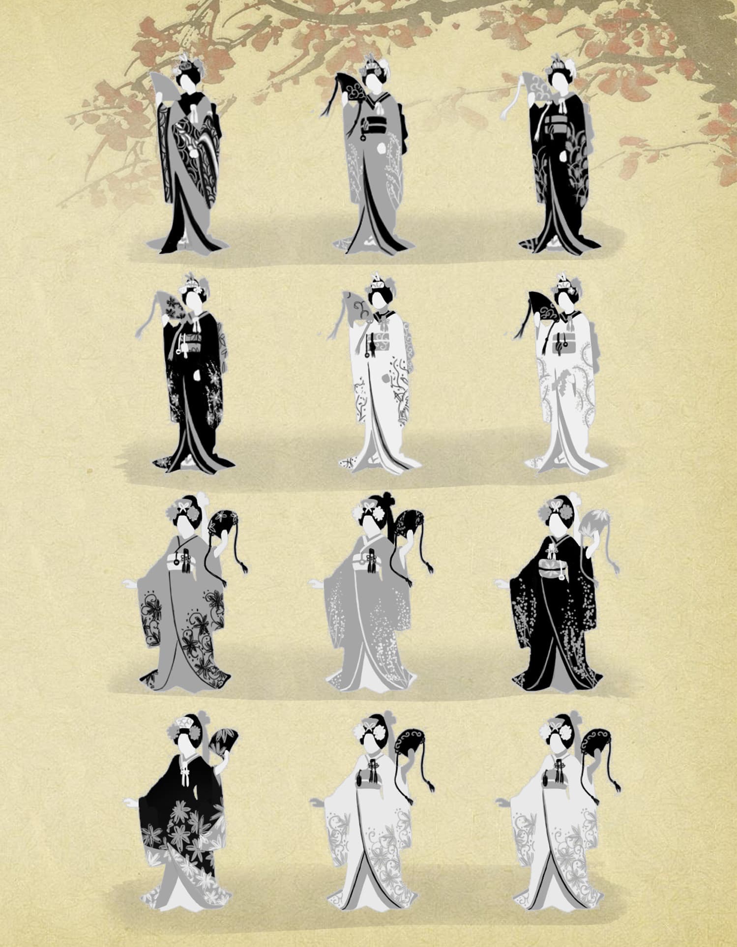 The only question is - who exactly this girl should be? I didn’t really want to do something modern, and I had already noticed several classic medieval and fantasy princesses/elves/witches among the ideas of my fellow students. As with the pirate, I needed an unusual point of view. For example, another culture. Why not? I already have a Chinese vampire and an African pirate. What prevents a Japanese bride? Or a novice in the temple?