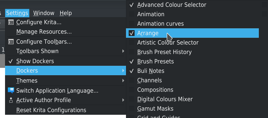You have to activate “Arrange” docker in menu Settings > Dockers