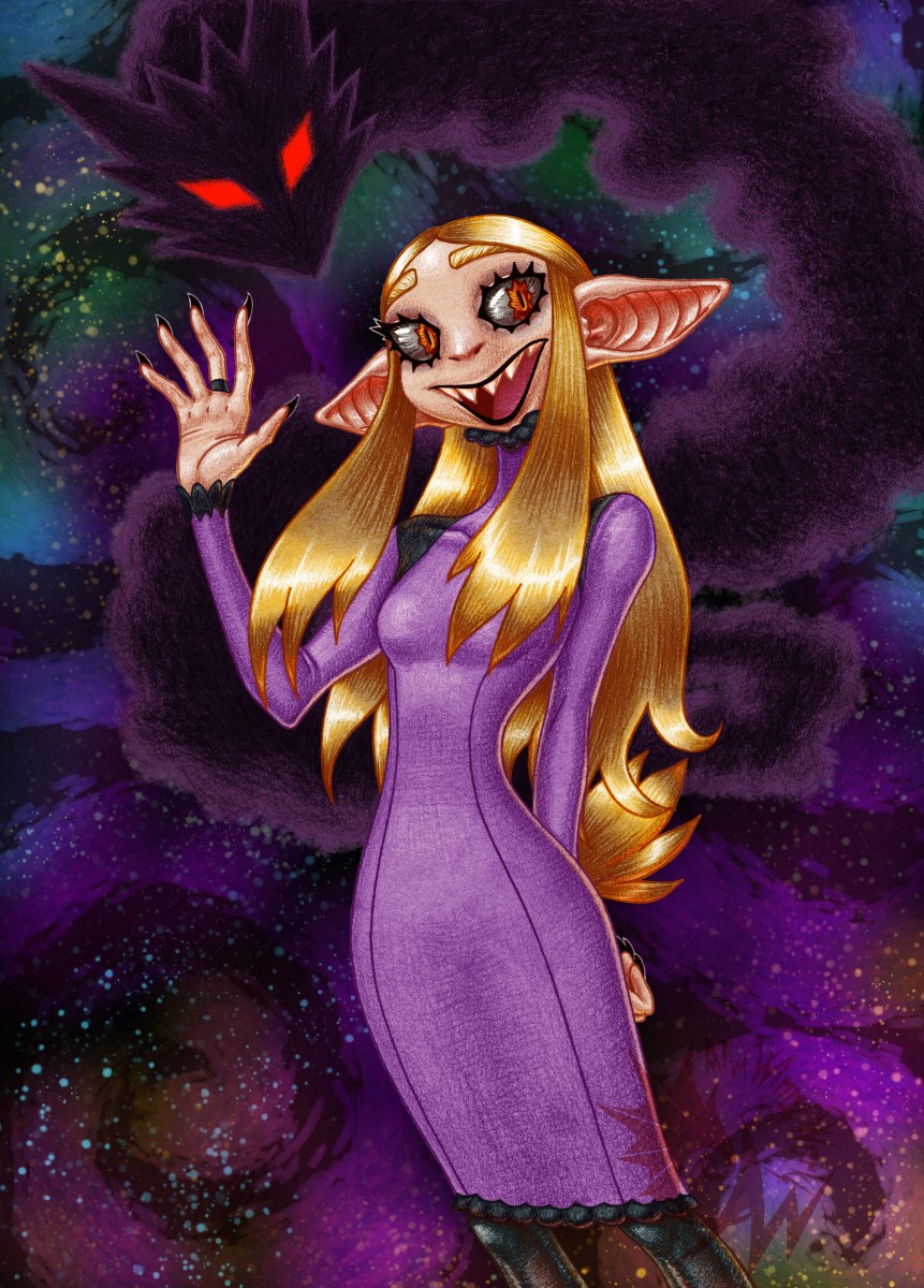 So, here my chaotic, shape-shifting, wild nature meets the real me. I tried to keep the colors as close to real-life counterparts as possible (eye color, hair color, skin color), but of course I exaggerated the tones a tiny bit. I used to draw my avatar’s eyes as green, when in reality they’re warm-grey which looks green-ish in the blue sky light… The image is obviously cartoonized, too :3