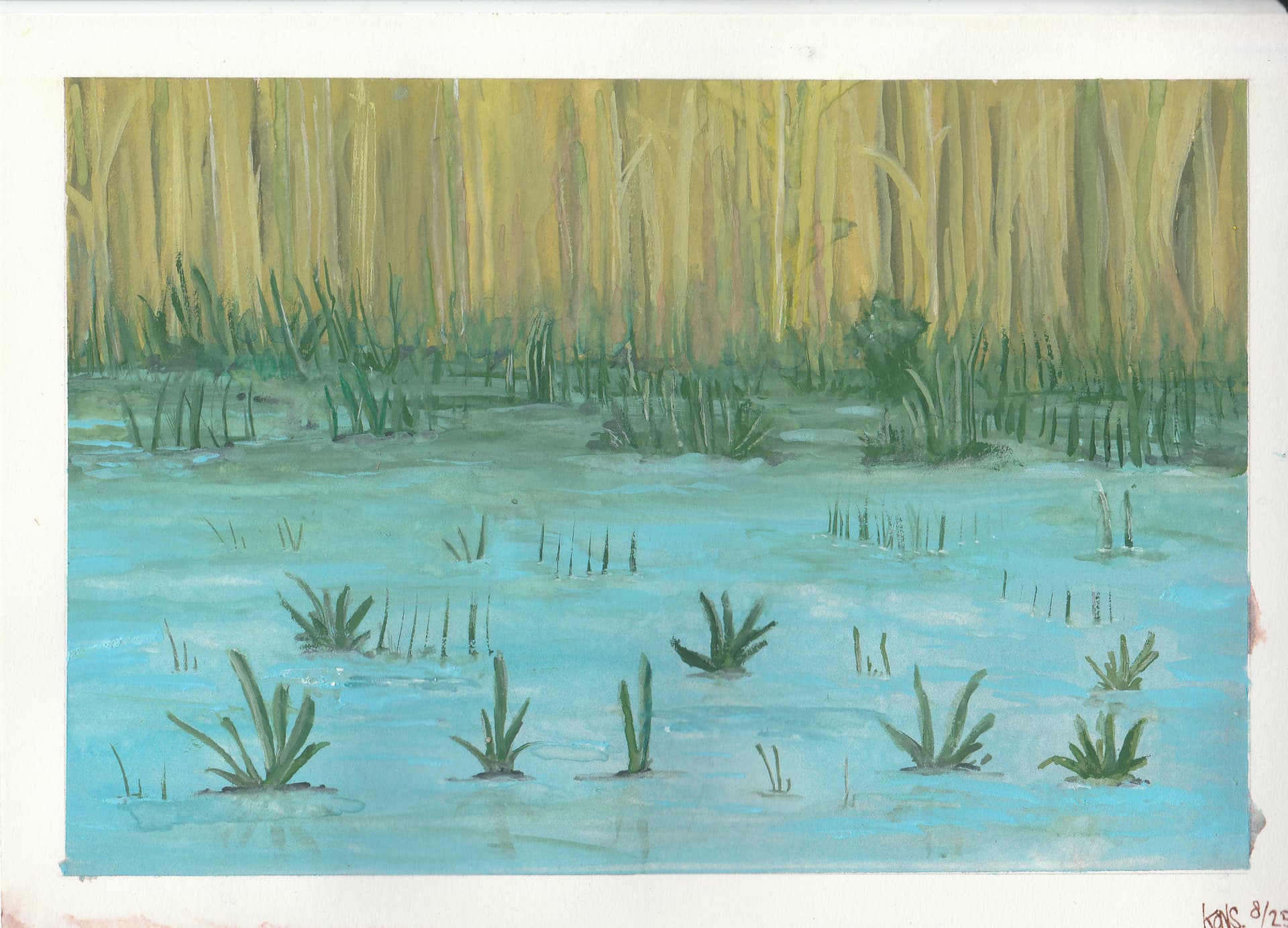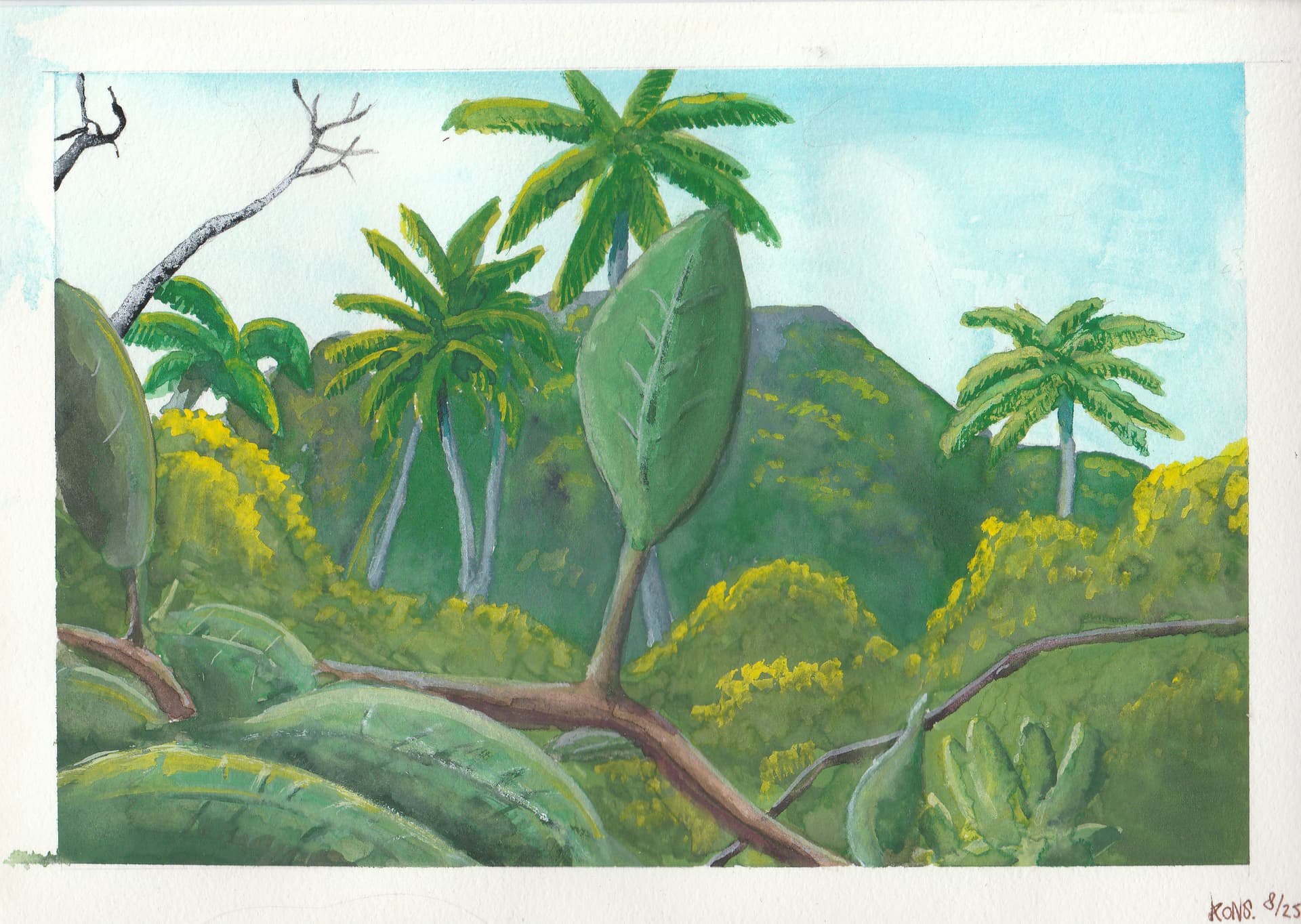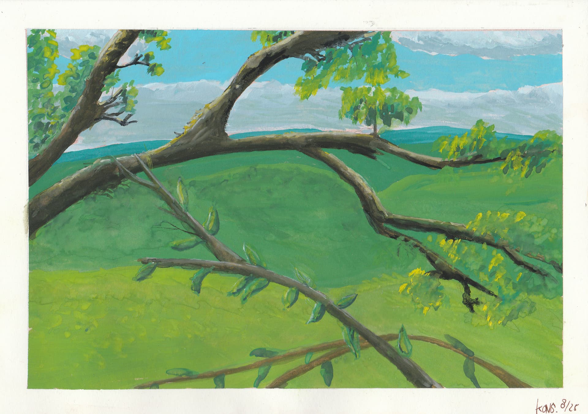 For an animation project centered around birds, I’m painting nine backgrounds in gouache.