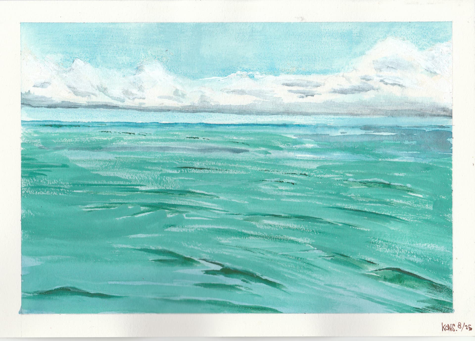 I mixed it out of a color called ‘helio turquoise’, which is only available from one brand (Schmincke).