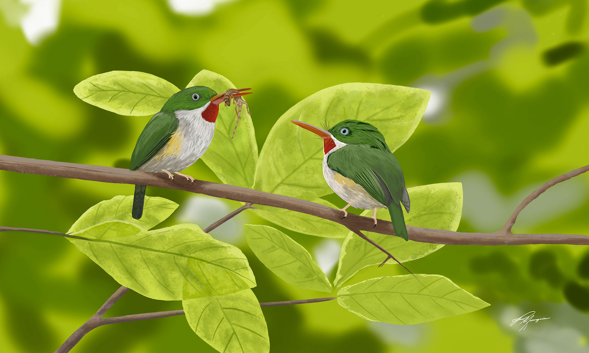 Puerto Rican Tody - “The Offering” shows a male that jsut transferred the food to the female. These birds are related to kingfishers.