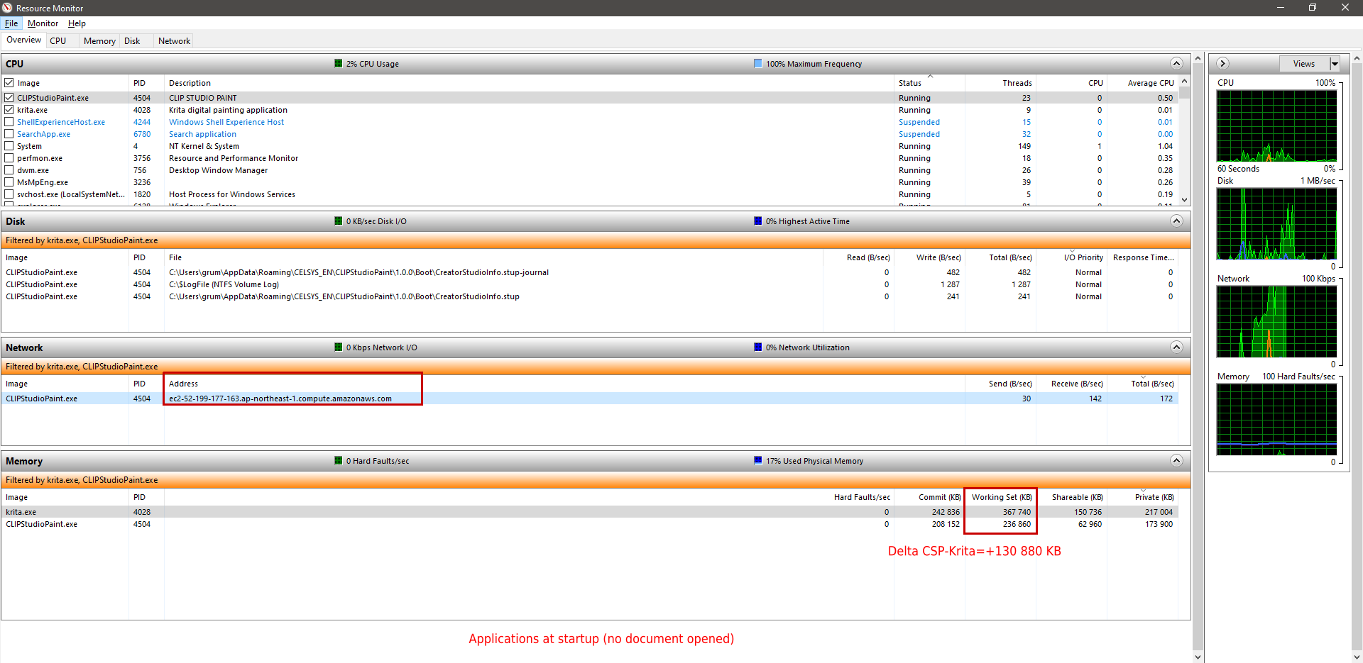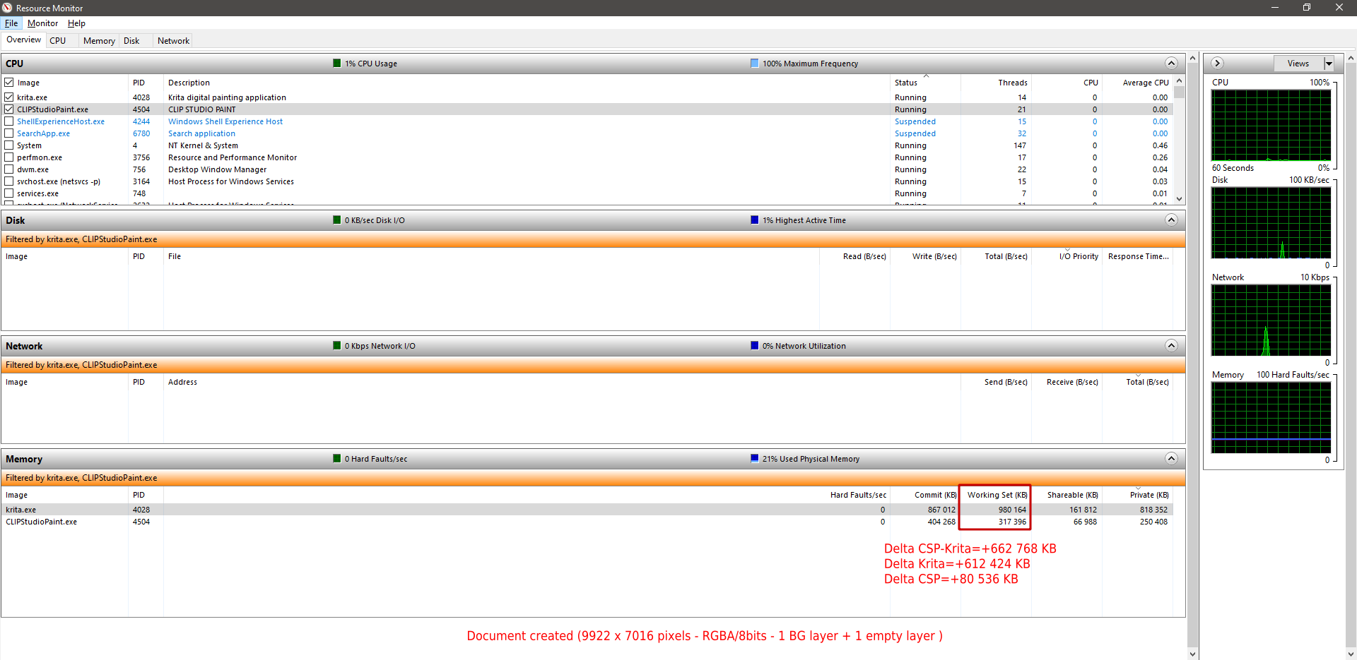 So clearly, at this point Krita need more RAM than CSP (+660MB)