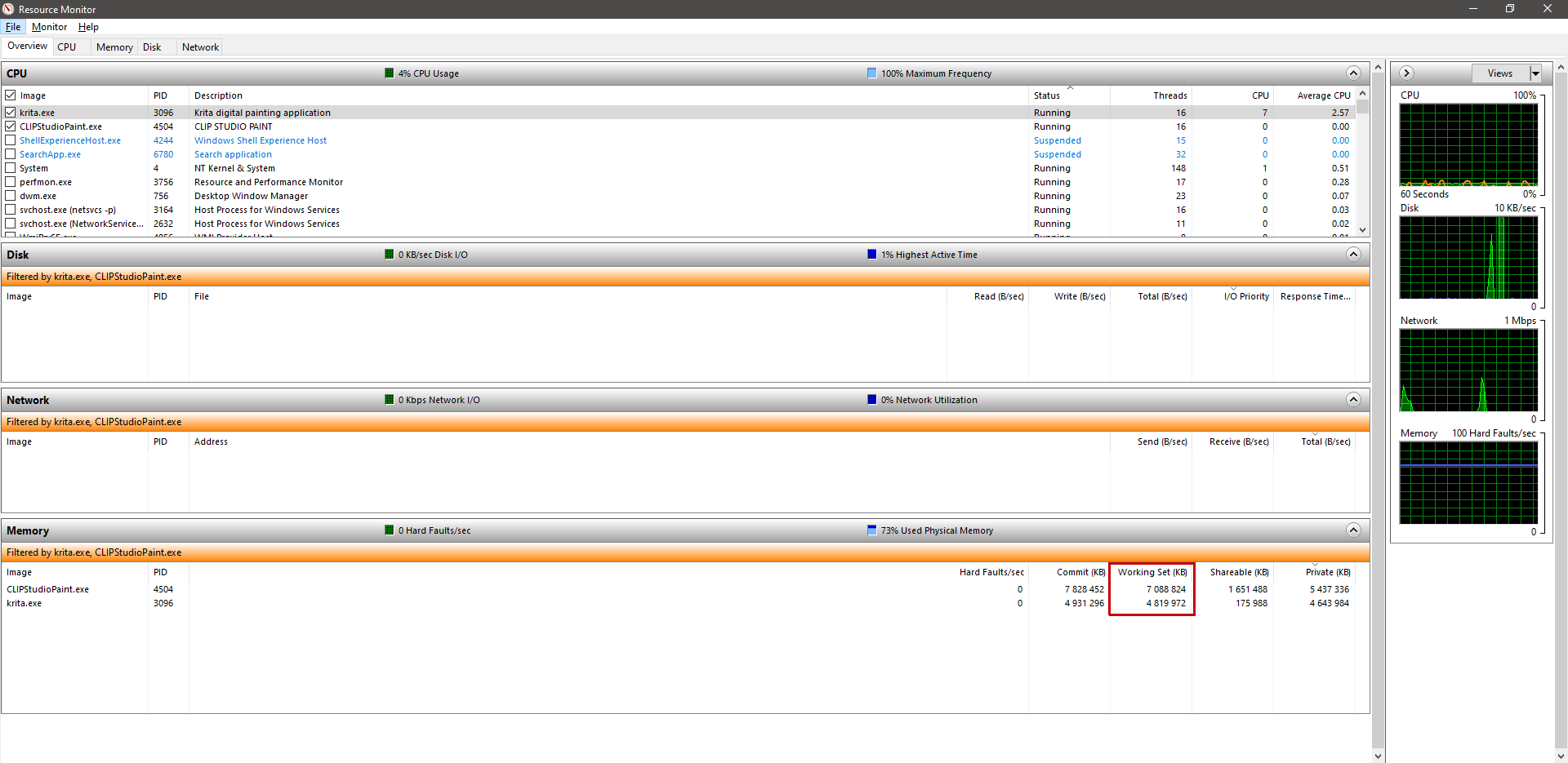 Clearly Krita use less RAM