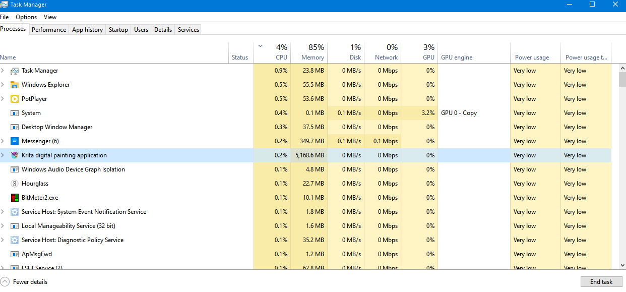 And also, Krita is built to be multi-system compatible (Windows, Linux, MacOS, Android); this means that if developers want to optimize Windows memory footprint to satisfy your needs, they probably have to code specific things for windows. And ignore all others users (or also spent time to optimize Linux, optimize MacOS, optimize Android…)