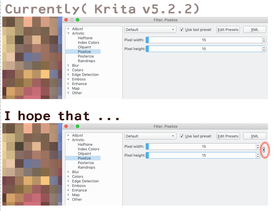 But,currently in Krita, I have to do the same action twice to make both values the same.