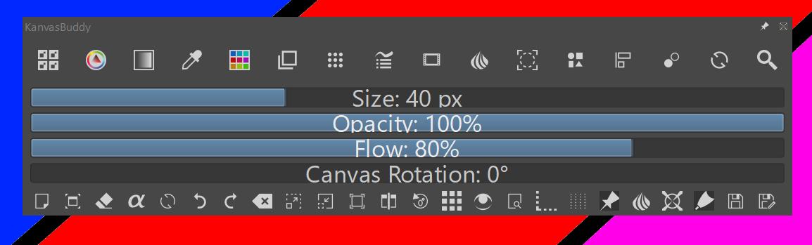 Another plugin that makes working in canvas only mode much more comfortable is KanvasBuddy. With KanvasBuddy you can display a menu on the canvas which gives you access to many functions, you can also customize it yourself and add or remove functions. You can find the topic here: