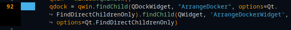 qdock = qwin.findChild(QWidget, "ArrangeDockerWidget")