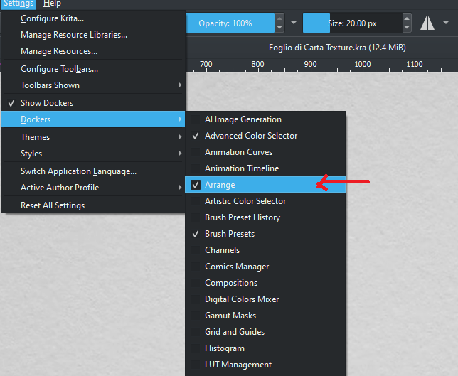 When I installed it, it took me a few minutes to find the panel, but in any case I leave a screen in the hypothesis that it can serve someone, that is in Settings → Dockers → Arrange