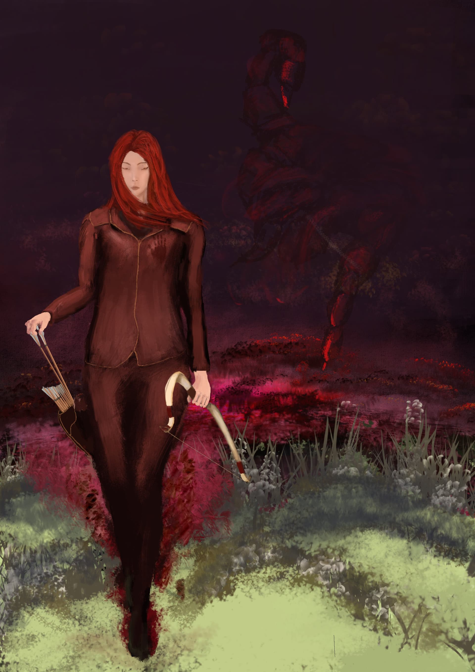 Illustration for an unpublished older novel of mine. This began with a generic anatomy study where I soon ditched the reference and drew the rest from imagination. For the face, I used another reference that I then adjusted. Many weeks of work in small bits.
