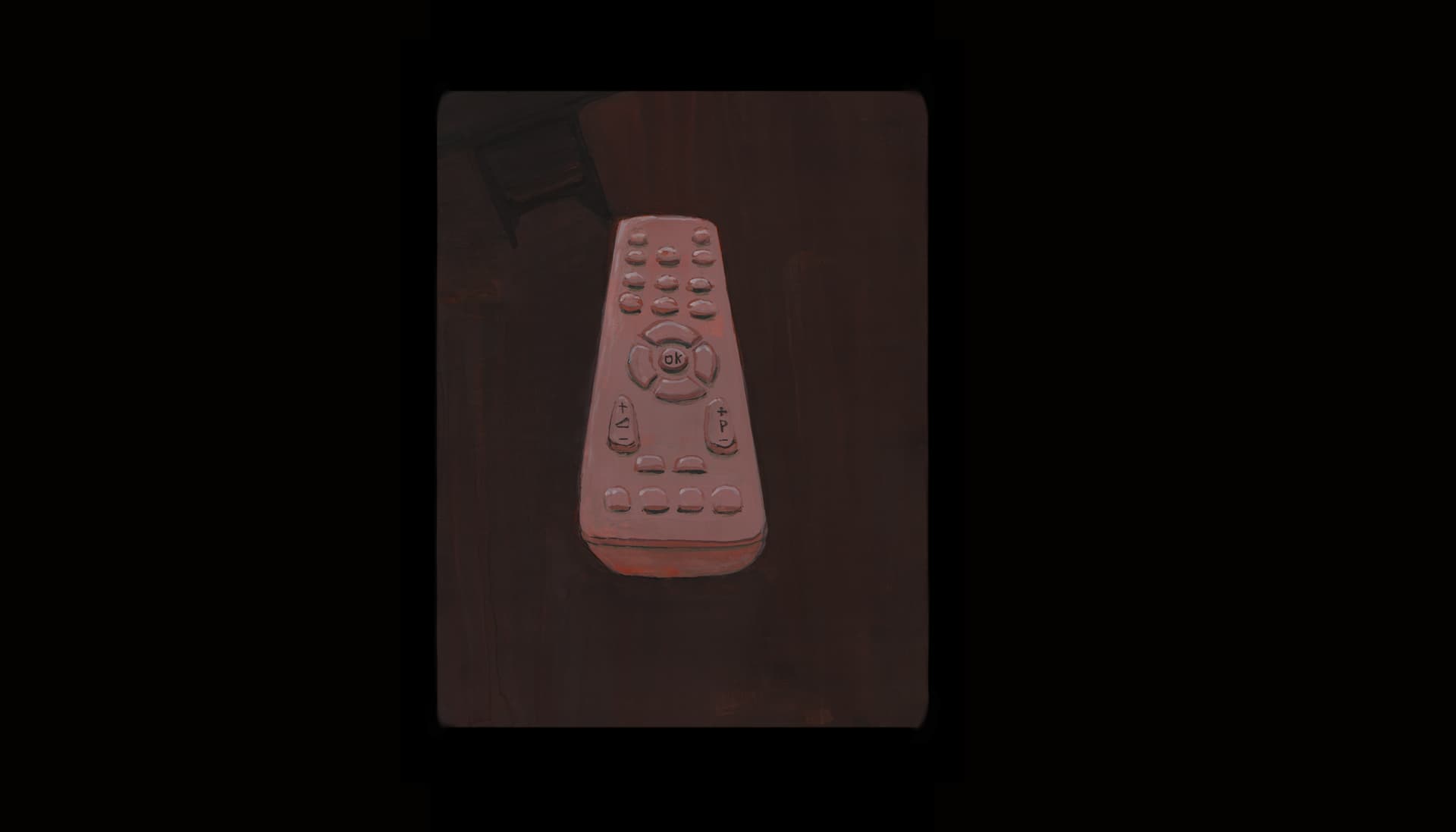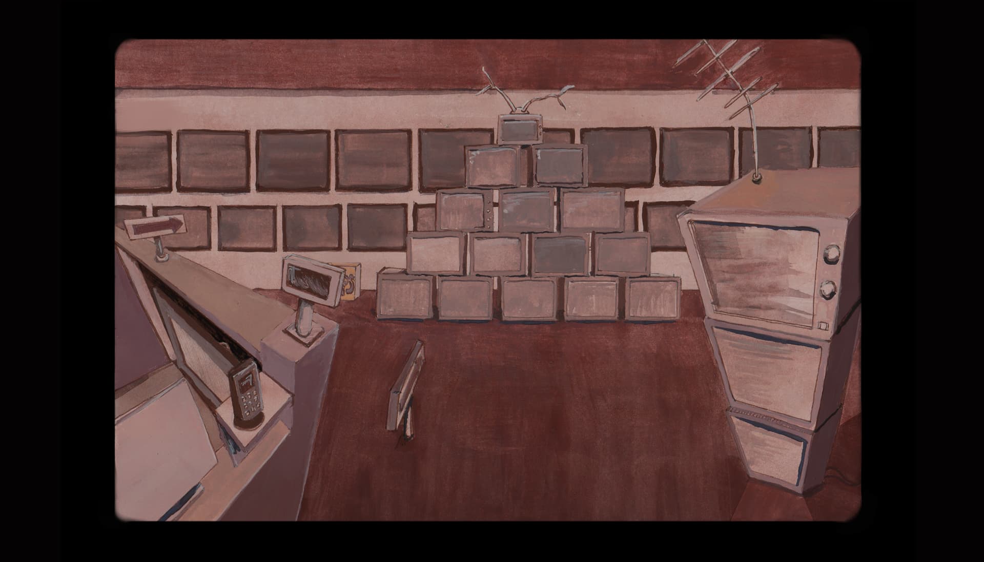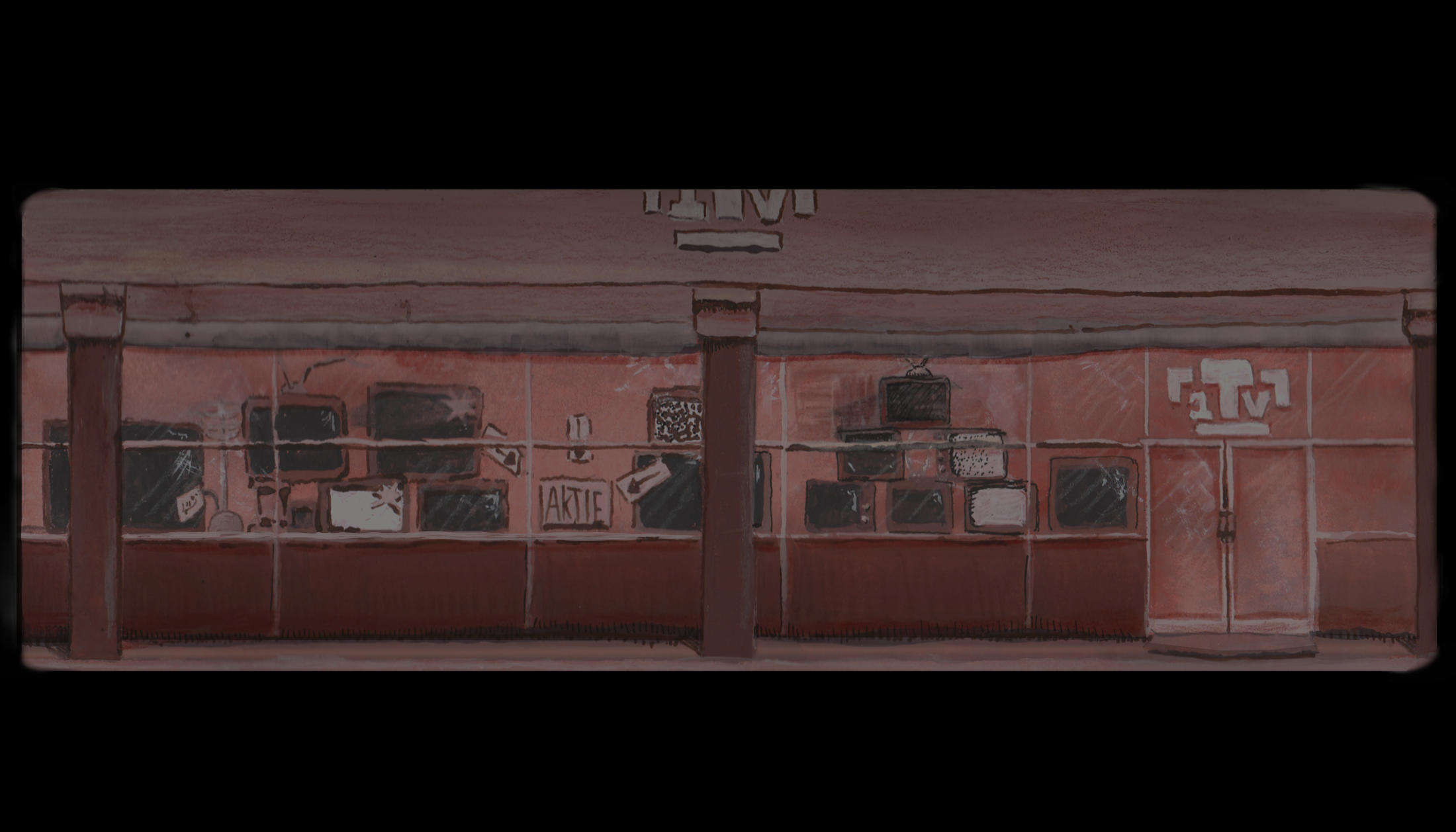 The starting scene, of the main character watching tv. There are scenes inbetween that I will not share yet, because the main character is the recording artist’s design.