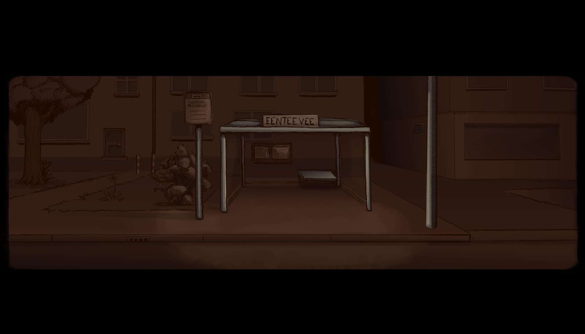 The busstop, a bus will travel here, dropping off the character.