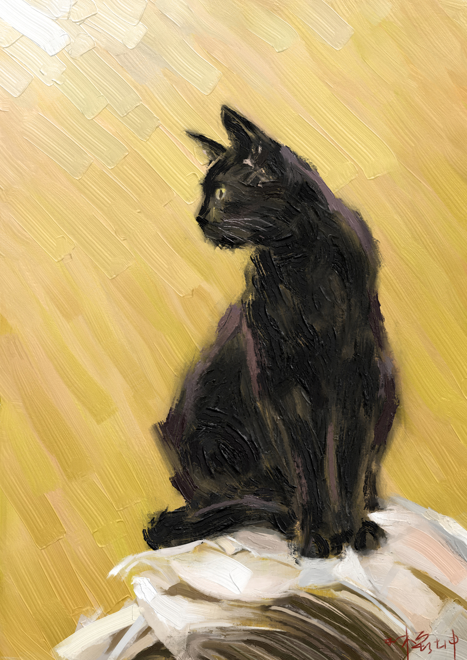 Another work that must be nominated is “Black Cat 20251110” by @z586t! It is a stroke of genius to depict this cat so impressively on canvas with just a few strokes!