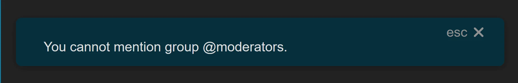 @raghukamath / @sooz / @Takiro / @tiar: Additionally, it seems strange that I can not use the tag @moderators in a posting, this enforces me to use all users I want to address this way one by one.