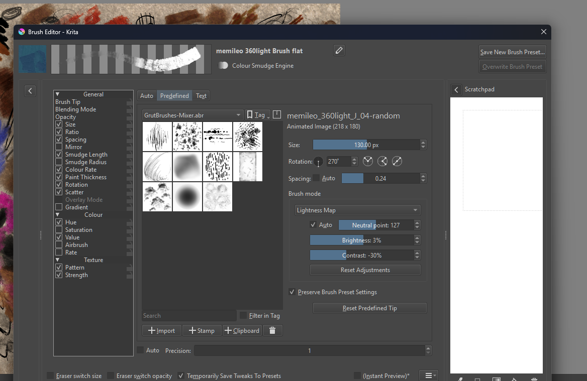 This is probably just me trying to get to grips with the software! - I could be looking for brushes that are incompatible with Krita - Grut and True Grit etc? I can import and see them under brushes in PS, but can’t find them after adding them into resources. But then funnily enough, a couple show up as brush tips under the brush editor…?