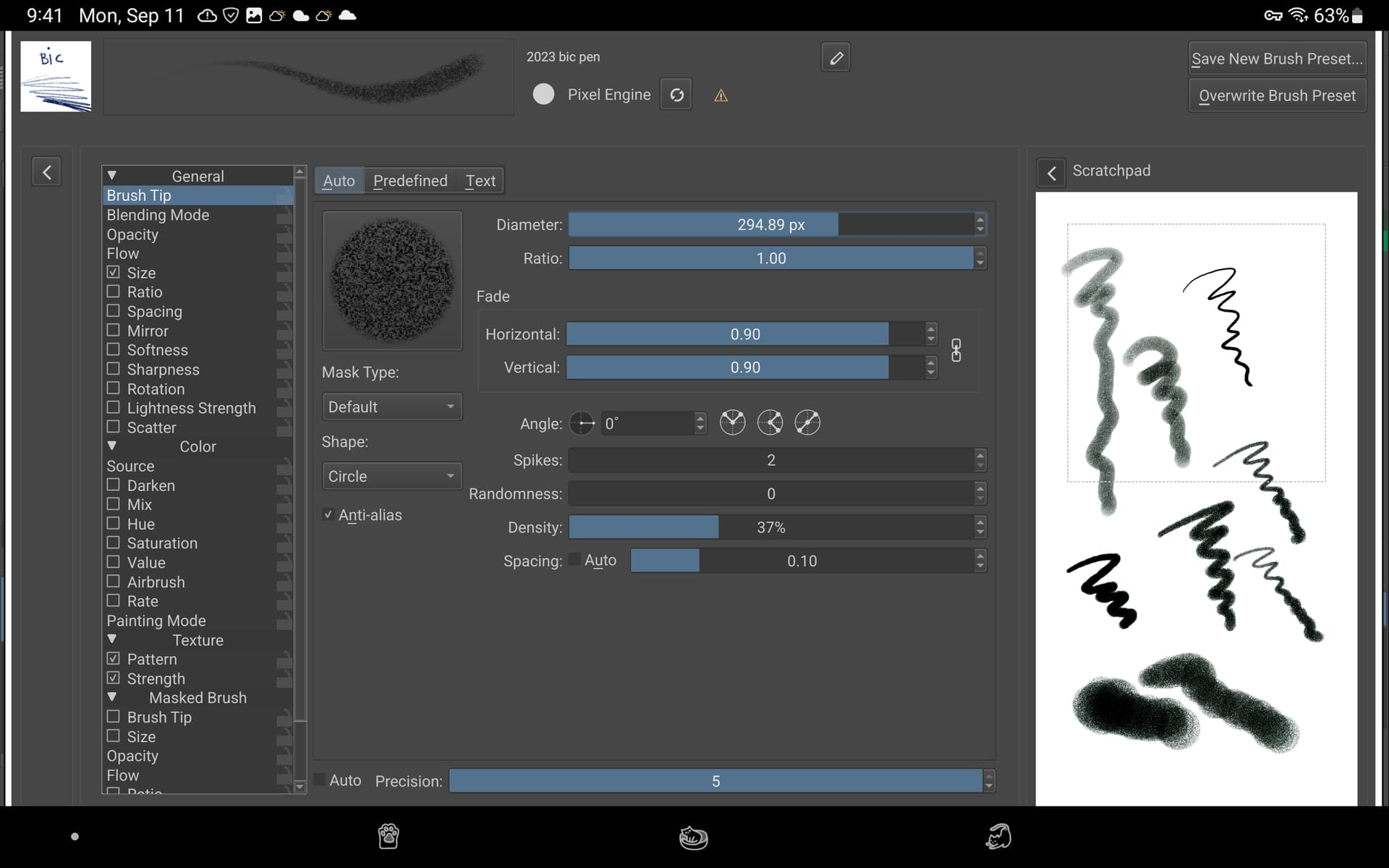 Those brushes have a density setting.