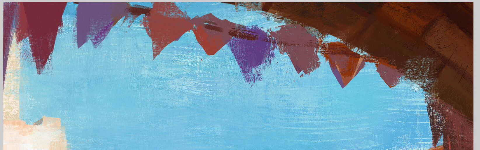 Secondly, texture in general is very useful as a way of modulating colour values. For example, making a brightly coloured underpainting and then painting a contrasting colour over that with a textured brush is a common technique used to increase perceived colour vibrancy. The problem now is that you can’t get from showing the underpainting a bit to blocking it out completely without going over the same area many times, which is frustrating to do.