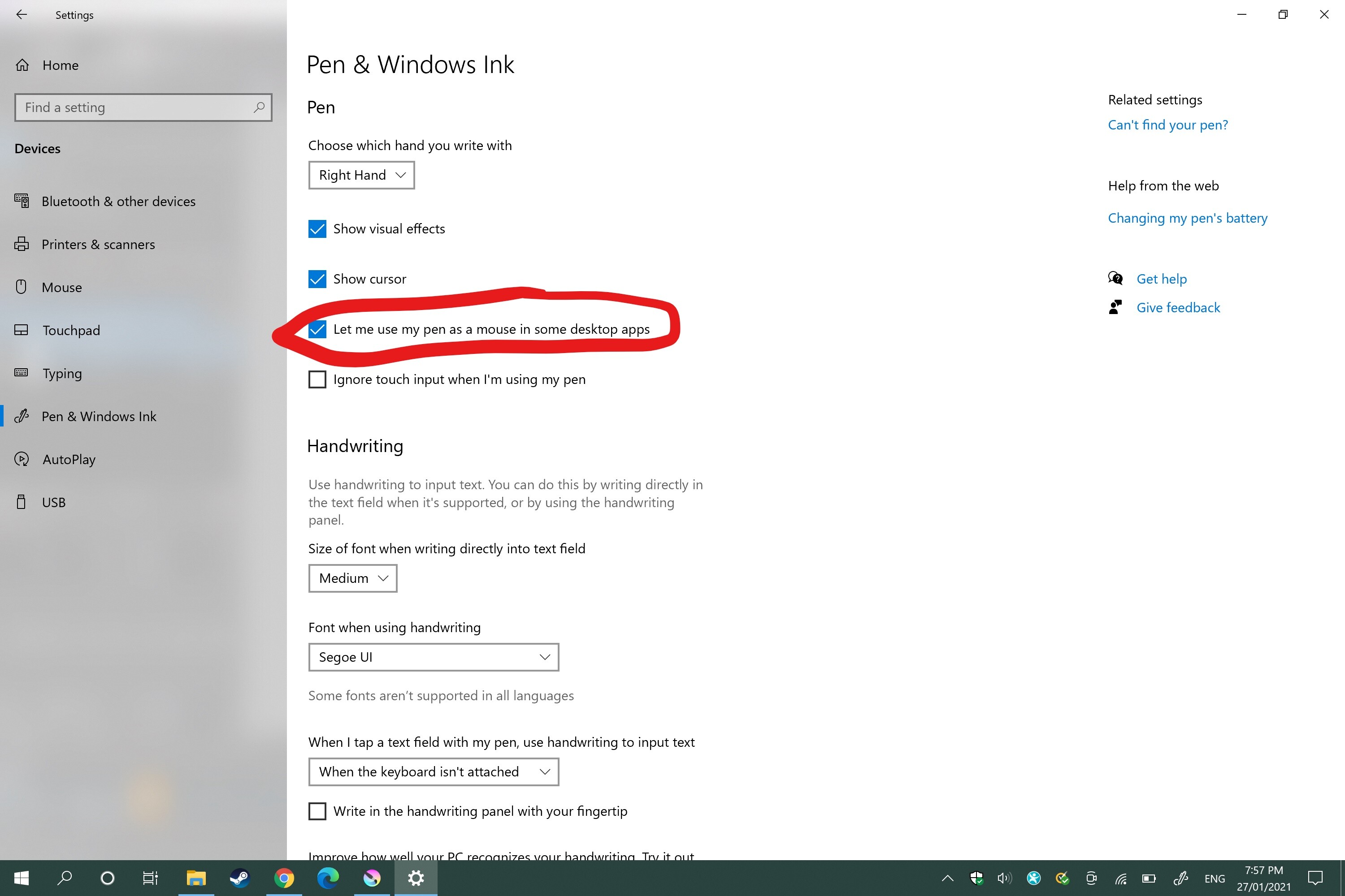 For reference, the bold thick lines are drawn with the mouse, the thin lines with circles and thin line are drawn with the pen. By using the “tablet event logging” feature I noticed that the circle line problem occurs when “Touch Update” is involved in the tablet log. When this text isn’t included in the tablet log, the pen works as expected with a smooth line. Ideally I should be able to draw with my pen without having to open the sketchpad in brushes (the only temporary solution I could find) and be able to switch between mouse and pen without having the circle problem. Any assistance or guidance is appreciated