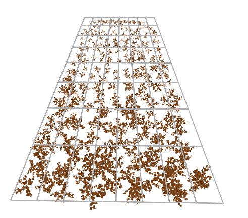 After that, you can use Size controlled by Perspective in the brush editor to give the effect of size variation with distance, using a Perspective Painting Assistant: