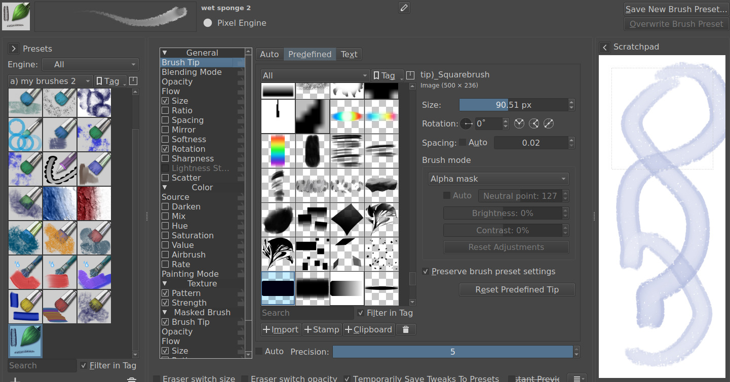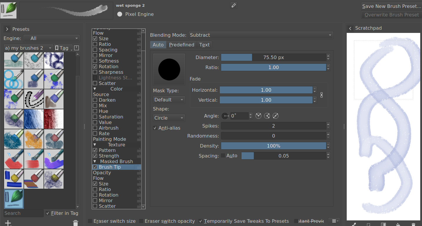 I have a few that can maybe help. the key is having the second brushtip in Subtract Blending mode. You can adjust the width of the outside line by adjusting the size of that second brushtip. Then if desired you can even add a pattern (below). Notice the the first brushtip is slightly larger, as I said above, adjust the second size to effect the outline.
