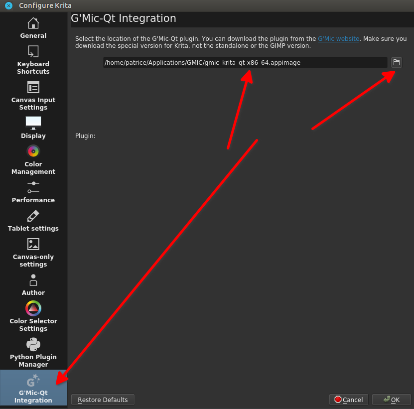 In Krita 5 I cannot chose anymore the G’MIC version I would like to use,