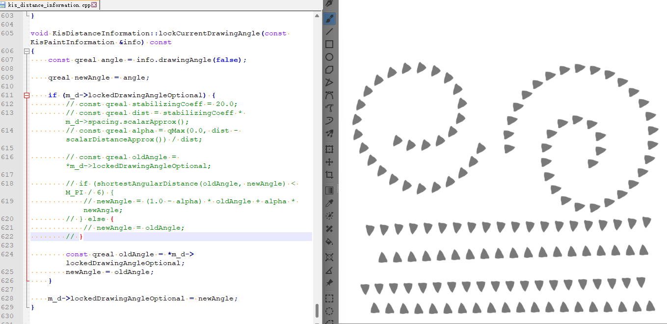 But I don’t know if this is a bug. The deleted code seems to change the angle smoothly, but it doesn’t seem to be set in other software, such as photoshop and clipstudiopaint.