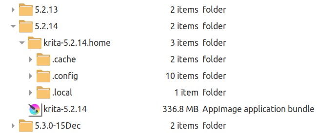In the folder where you’ve decided to put it, place the appimage file and give it execution permissions. Rename the appimage to krita-x.y.z for convenience (you don’t need the appimage extension).