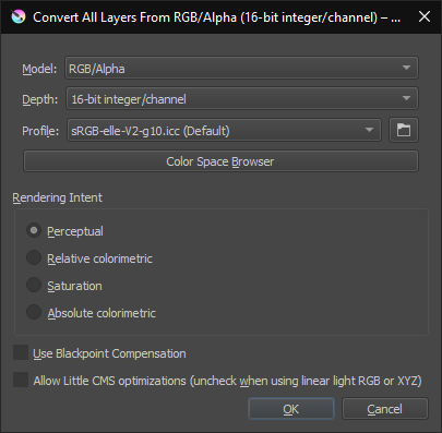 This was with 8-bit and 16-bit default colour profile.