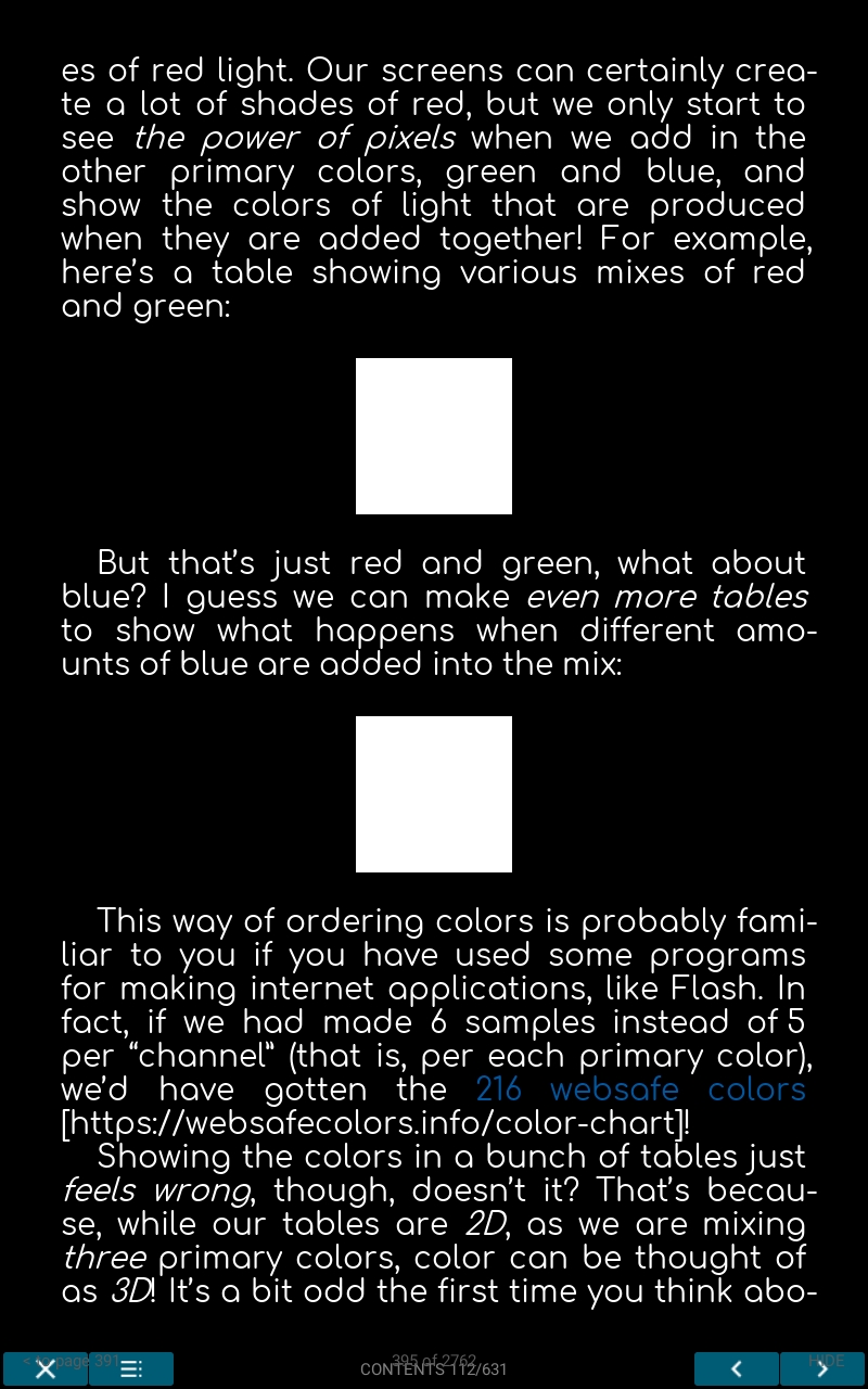 So, I Downloaded the EPUB file of manual from the site. I just read some random pages so as to check whether the file was okay or not. In some pages, some squares were blank (which according to the written description below them) which were supposed to be colored. So, i am not much familiar with EPUB format but could anyone pls help me.