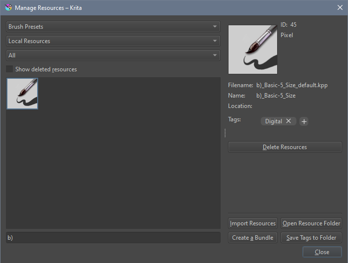If I understood what happen, the b) Basic-5 Size brush might be missing in this list.