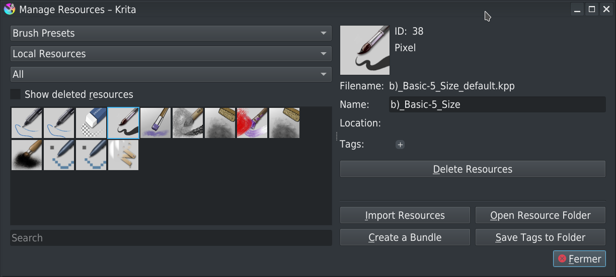 C:\Users\arjen\AppData\Roaming\krita\pykrita\bulinotes\bn\bnbrush.py in getPreset(name=<PyKrita.krita.Resource object>)
