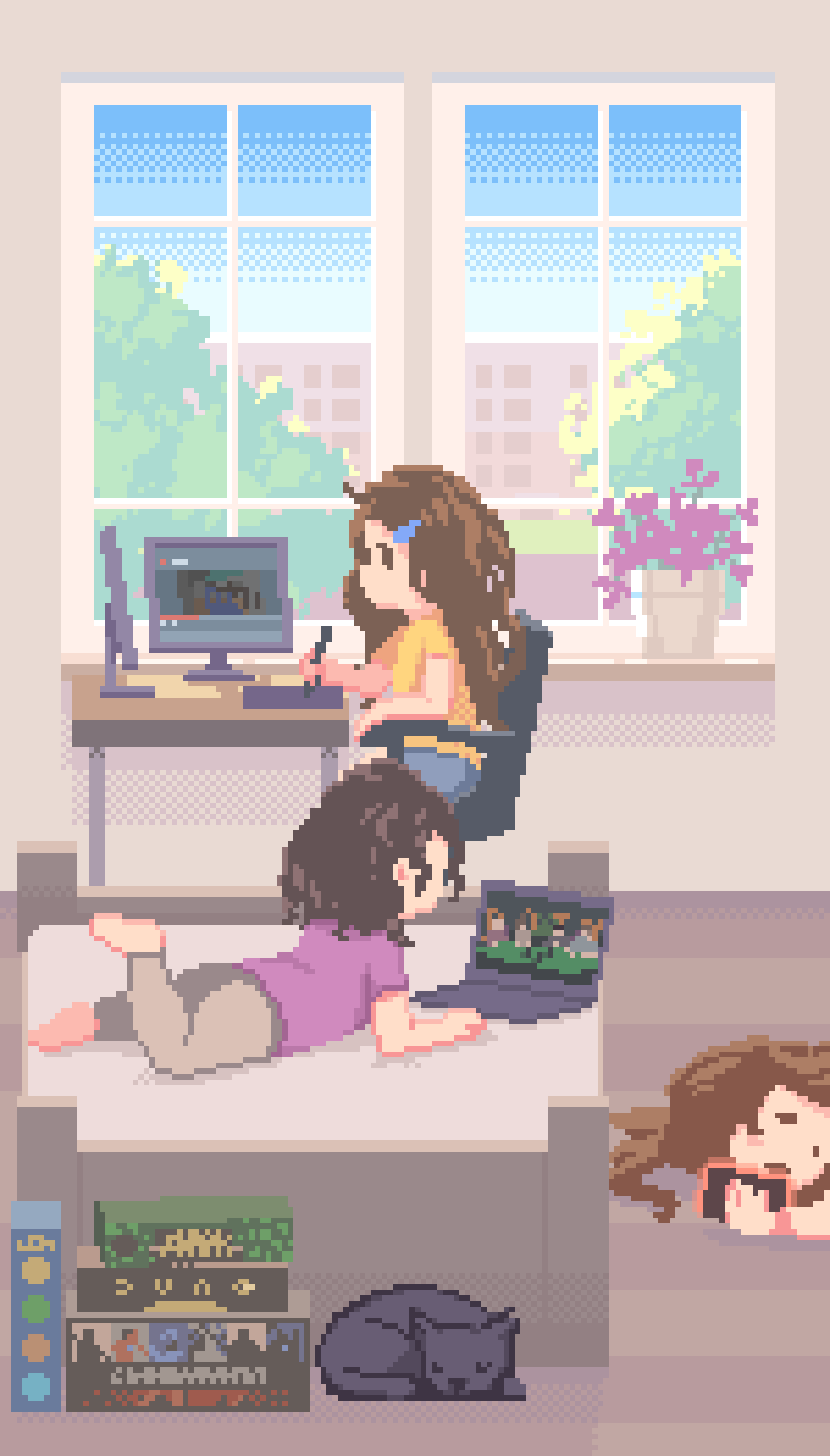 very cute, it’s also very detailed, i see you put plenty of effort in the small pictures on the screens as well as other places. The one thing i would suggest perhaps is to make the colors more balanced in contrast and hue perhaps, i just think some details get completly lost unless i zoom in. Anyways color is a very personal thing, so just keep doing what you feel works for you.