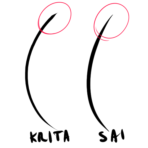 After exploring CSP for a while, I’ve found that the brush strokes smoothly taper off to a point, where in Krita, I have to fiddle around to get anything other than a blunted end to my brush strokes.