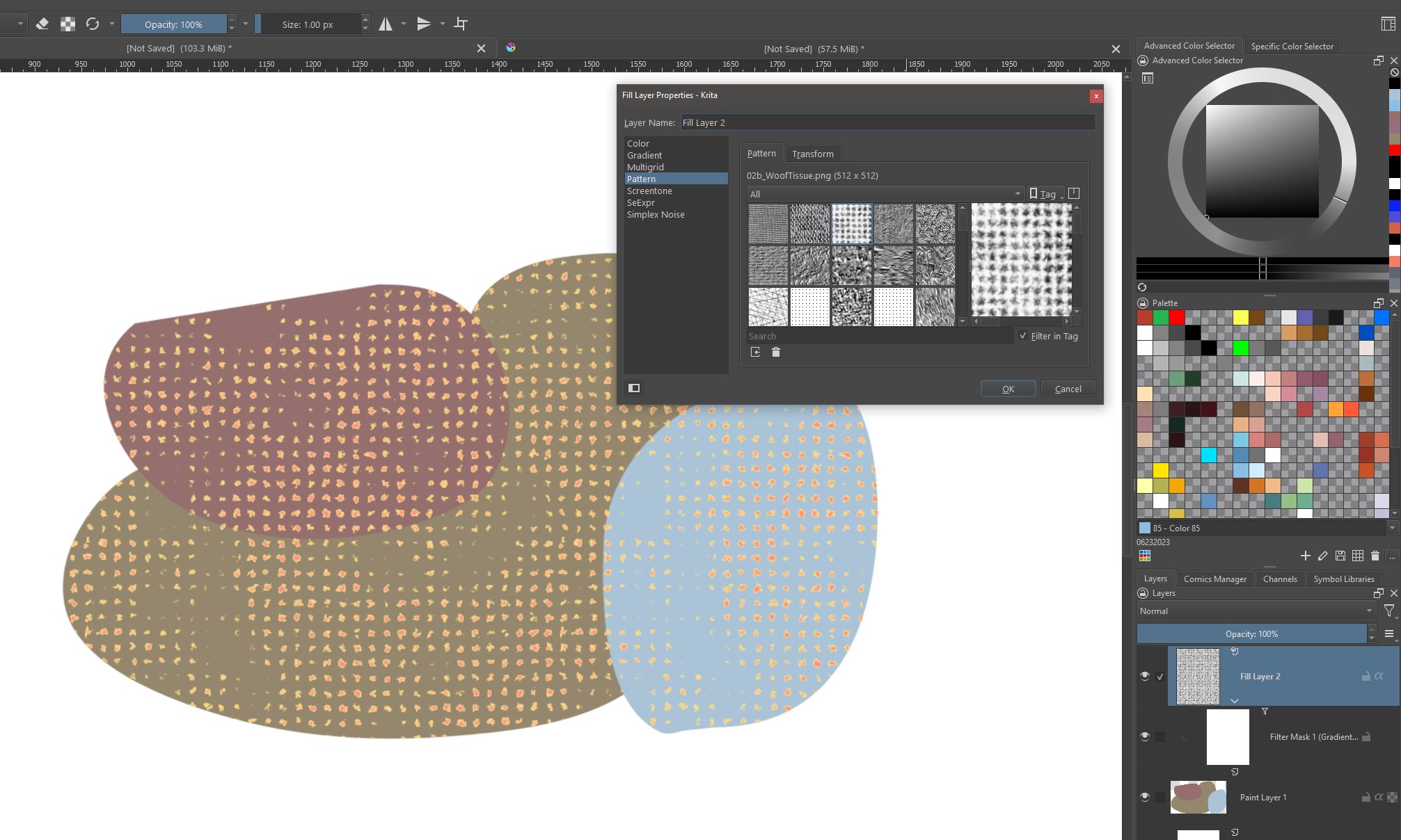 Also, by using the “Pattern” version of a Fill Layer as the texture source, you can easily apply different textures.