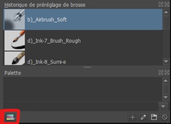 My color palette is no longer visible (I suspect my kid ) and I don’t manage to bring it back. It used to be placed nearby “calques” and “vue d’ensemble” (as shown surrounded in red