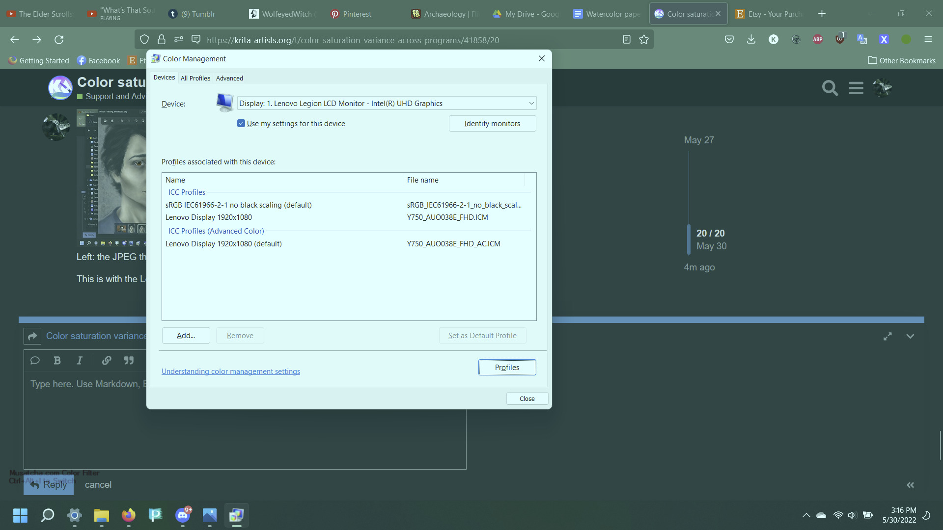 When I switched back to the IEC rather than the Lenovo Display setting, it seems like the only problem is in the images being posted online. So… I don’t even know.
